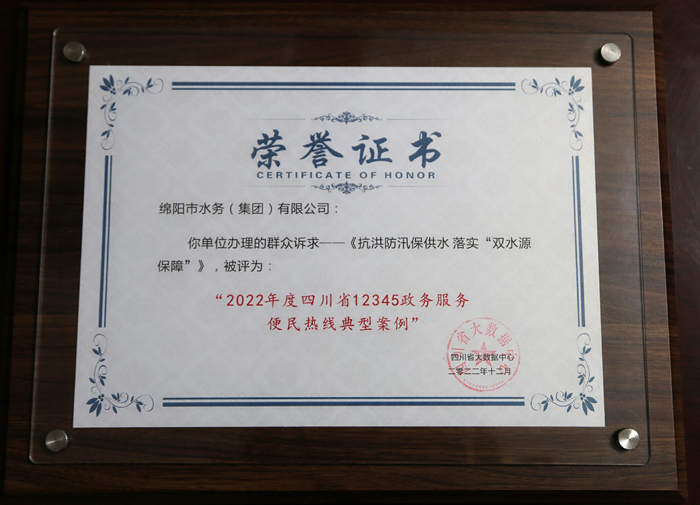绵阳市英国上市公司365获评“2022年度四川省12345政务服务便民热线典型案例”奖