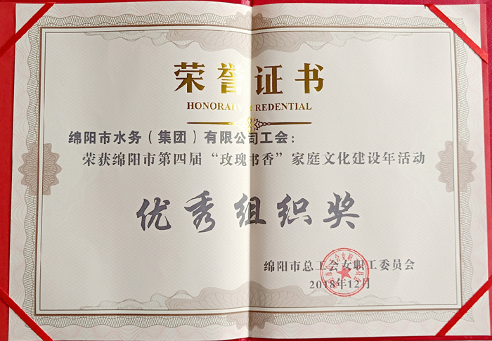 2018年12月绵阳市第四届“玫瑰书香”家庭文化建设年活动游戏组织奖